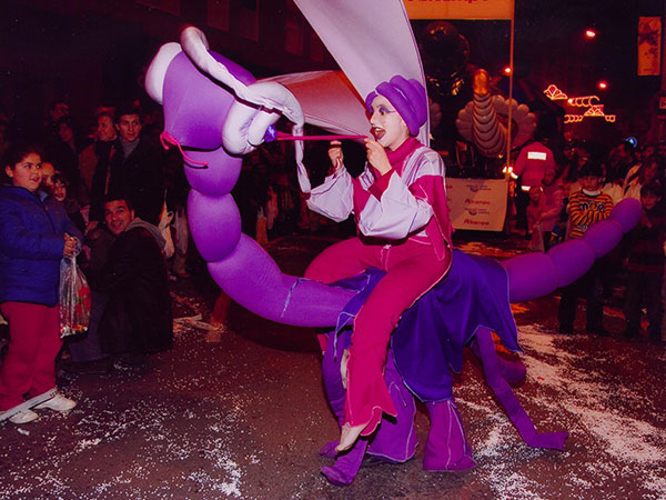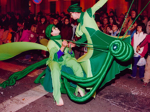 Insectopía es una comparsa de Animación Musical dirigida a todo el público. Es una sinfonía de colores, formas y música, donde duendes e insectos fantásticos y gigantes juegan alrededor de un elemento objeto deslumbrante colorido y sonoro. Los insectos están guiados por una Hada que reina en el mudo mágico….